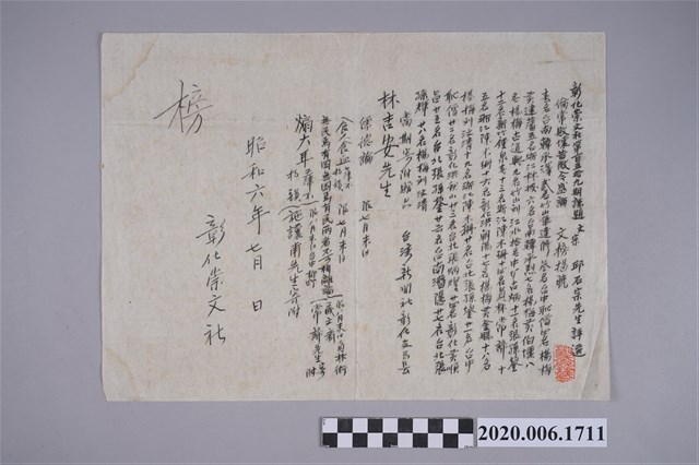2020.006.1711 彰化崇文社第百五拾九期課題