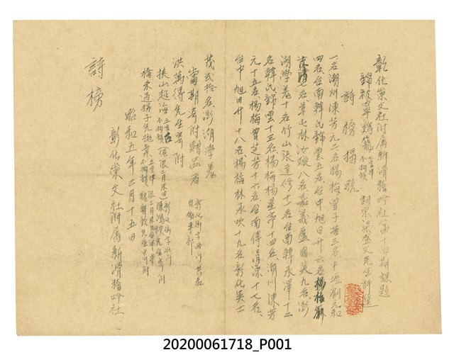 2020.006.1718 彰化崇文社附屬新滑稽吟社第十四期課題