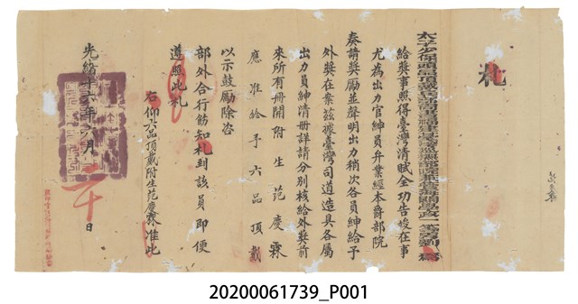 2020.006.1739 札給獎事照得台灣清賦全公告竣在事