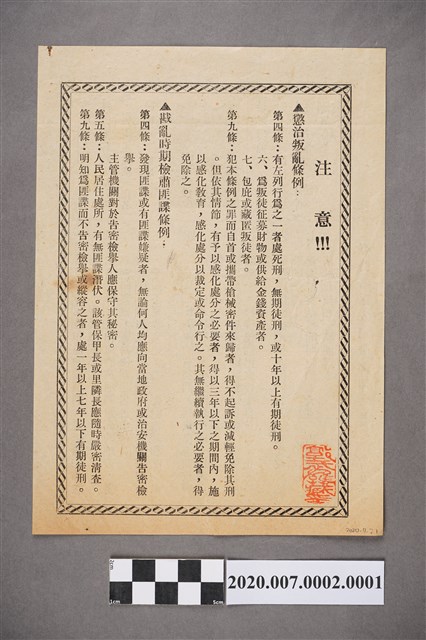 2020.007.0002.0001 臺灣省保安司令部印〈逃匪林元枝〉傳單