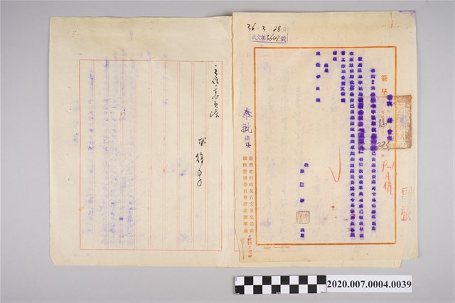 2020.007.0004.0039 1947年3月28日「為基隆車掌區助役察榮發己由基隆要塞司令部保釋返區由」簽呈正副本