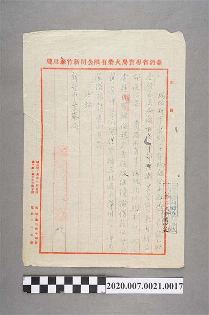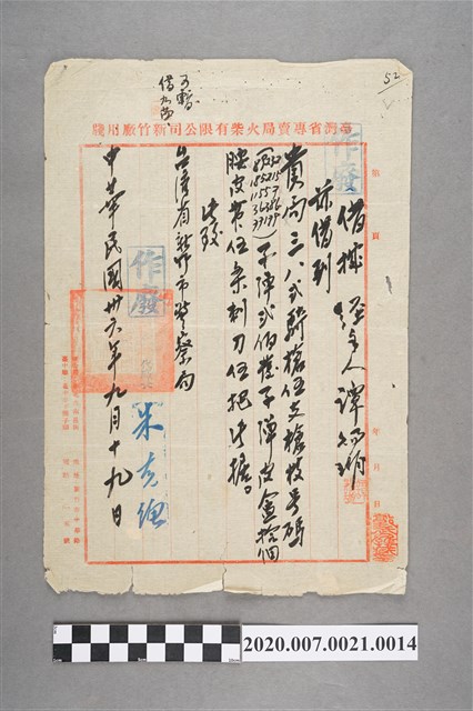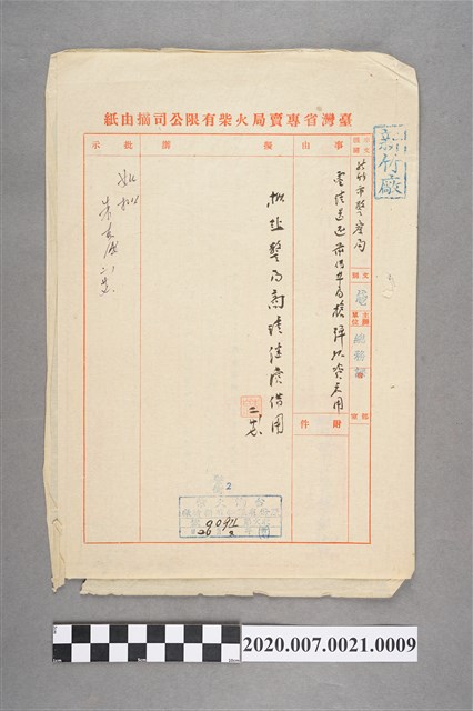 2020.007.0021.0014 臺灣省專賣局火柴有限公司新竹廠民國36年9月19日文件