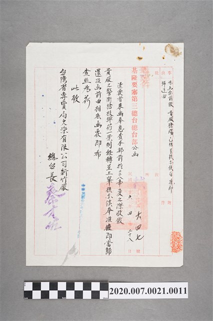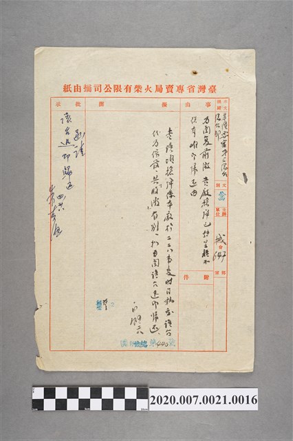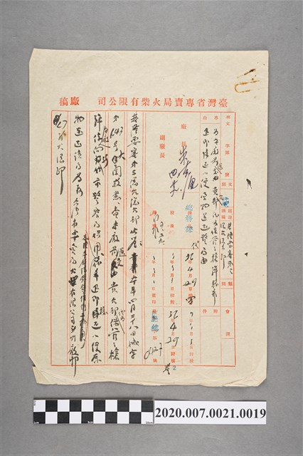2020.007.0021.0019 臺灣省專賣局火柴有限公司代電公文第0477號