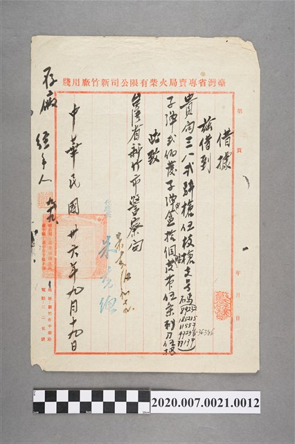 2020.007.0021.0012 臺灣省專賣局火柴有限公司新竹廠借據