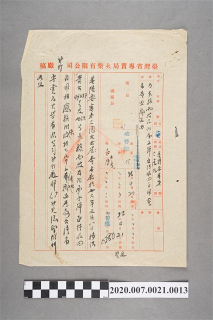 2020.007.0021.0013 臺灣省專賣局火柴有限公司代電公文第0380號