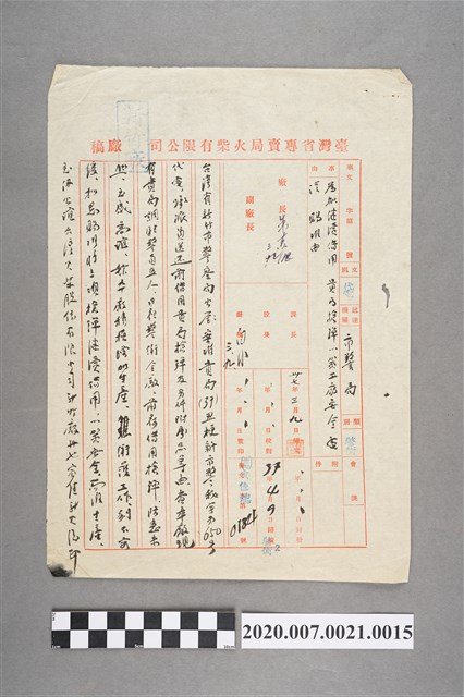 2020.007.0021.0015 臺灣省專賣局火柴有限公司代電公文第0184號