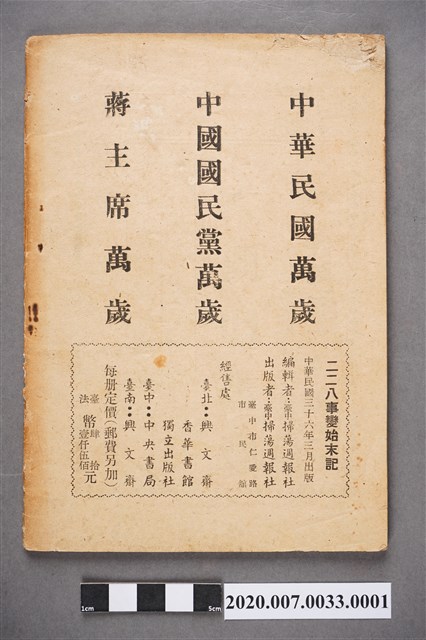 2020.007.0033.0001 《臺灣228事變始末紀》