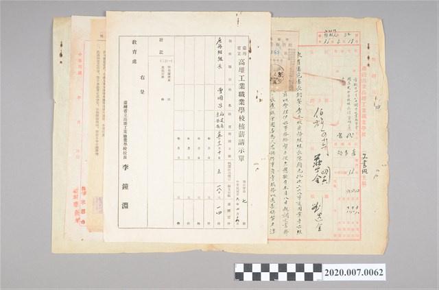 2020.007.0062 高雄工業職業學校228事件後解聘任用薪資文件