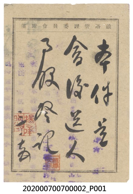 2020.007.0070.0002 鐵路管理委員會附箋