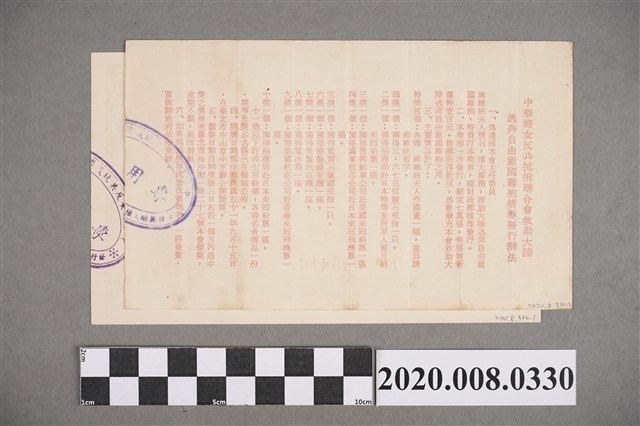 民國51年婦聯會發行救助大陸逃奔自由祖國難胞獎券100元, 全新