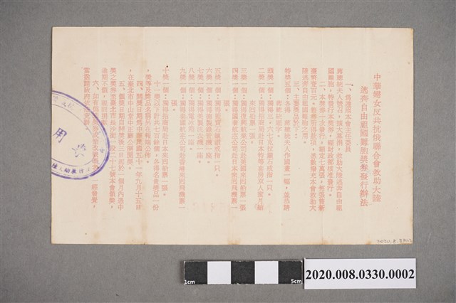 民國51年婦聯會發行救助大陸逃奔自由祖國難胞獎券100元, 全新