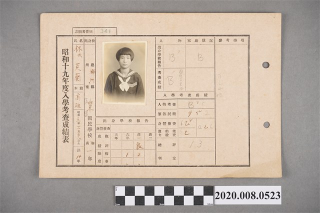 2020.008.0523 昭和十九年度入學考查成績表 林英蘭