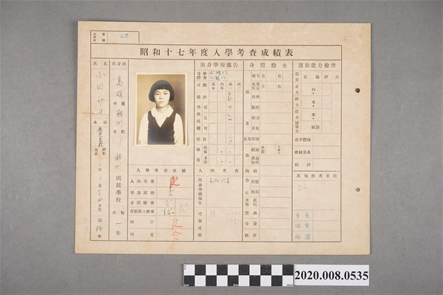 2020.008.0535 昭和十七年度入學考查成績表 小田サコ