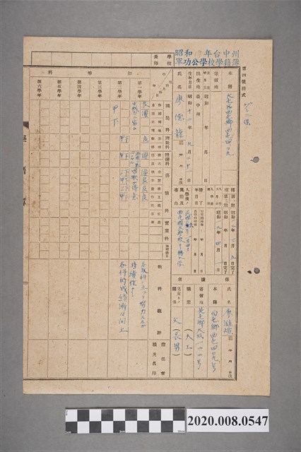 2020.008.0547 昭和十九年台中州軍功公學校學籍簿 廖德龍