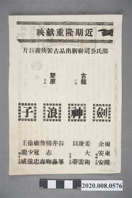 1. 臺灣電影《血玉》於臺灣戲院「第一劇場」上映時的電影本事單張。其本事正面印有片名「血玉」及其故事簡介,以及「第一劇場」商標和「娛樂之宮 服務第一 國片之宮 聲光第一」字樣。本事背面則為近期獻映,由古龍小說改編、楚元導演的電影《劍神浪子》的電影廣告,註記有「邵氏公司嶄新出品古裝俠義巨片」的廣告文案,以及主演演員名單。2. 臺灣電影《血玉》由王氏影業公司公司於1977年出品。是由午馬執導的動作片,金銘武術指導,王道、董瑋參加演出,講述段天云為父復仇的故事。王氏影業公司是1976年臺灣演員王玨在香港自組的電影公司,僅製作《南拳北腿活閻王》(1976)及《血玉》二片。
