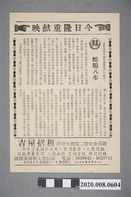 2020.008.0604 國聲電影本事單張:《 蛇鶴八步》