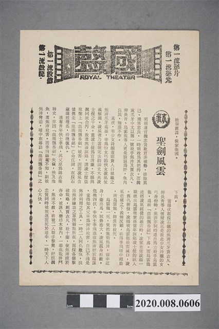 2020.008.0606 國聲電影本事單張:《 聖劍風雲》