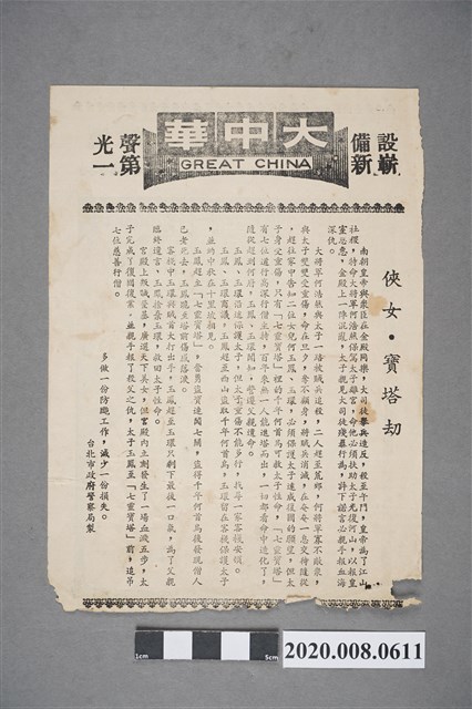 2020.008.0611 大中華戲院電影本事單張:《俠女、寶塔劫》