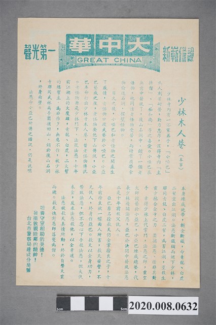 2020.008.0632 大中華戲院電影本事單張:《少林木人巷》