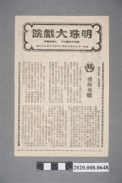 2020.008.0648 明珠大戲院電影本事單張:《飛燕雙嬌》