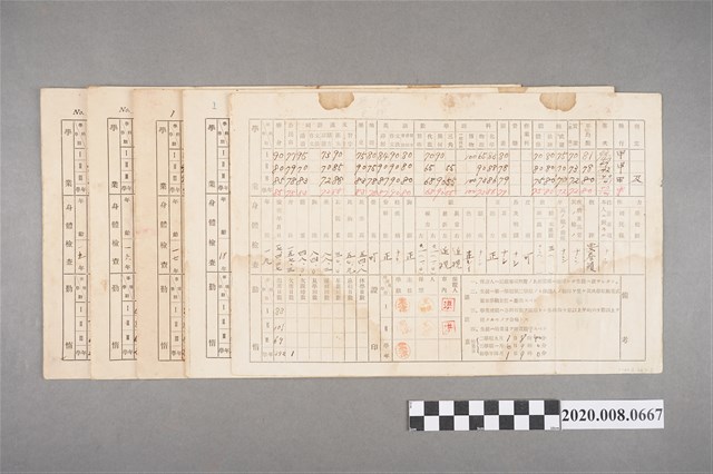 昭和13~17年臺南長老教中學學業成績通告表, 計5張