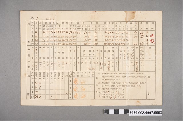 昭和13~17年臺南長老教中學學業成績通告表, 計5張