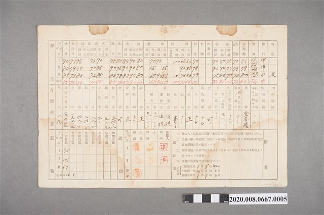 臺南長老教中學學業成績通告表