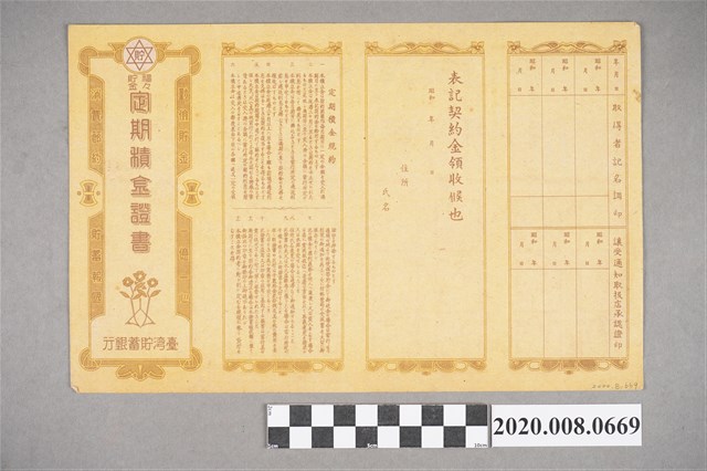 台灣儲蓄銀行定期積金證書-序號:32348