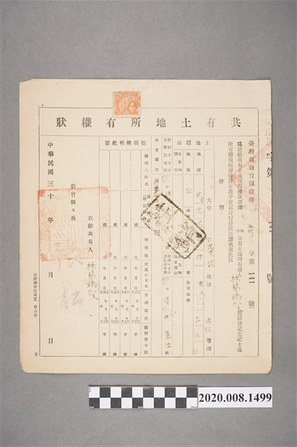 2020.008.1499 民國30年林蔡嬌霞共有土地所有權狀