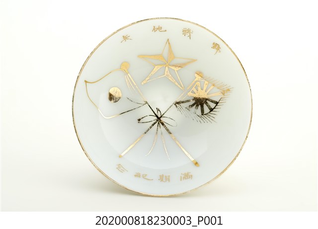 瓷杯4個:(1)近衛騎兵部隊紀念, (2)第十八聯隊, (3)滿洲駐剳工十五紀念, (4)野戰砲兵滿期紀念, 日治時期