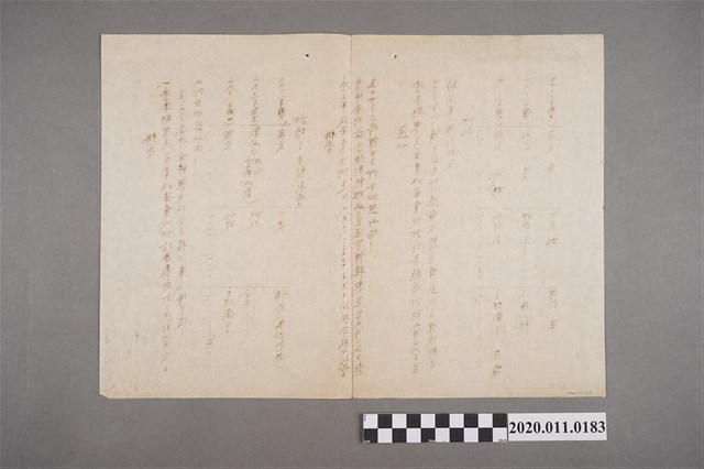 本件為臺南縣立新化初級中學考試公告,由臺南新化柯瑞吉家族捐贈。文件上寫有:「佈告 一、查本學期應屆畢業班畢業考試經奉縣府訂定於六月十八日至二十日舉行 茲將應試時間表公布於後」、「試場:本校禮堂」等字樣,考試科目計有:國文科、數學科、英文科、地理科、理化科、歷史科、生理衛生科、公民科、博物科(動物植物)。