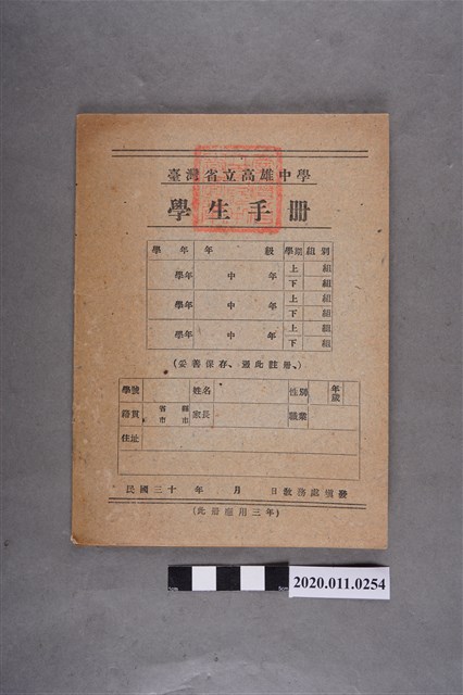 2020.011.0254 臺灣省立高雄中學學生手冊