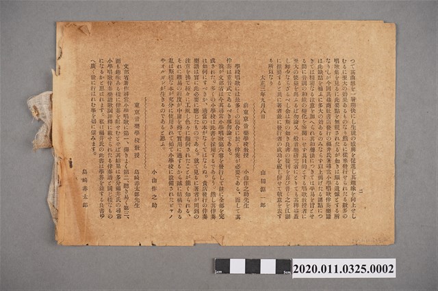 2020.011.0325.0002 尋常小學唱歌伴奏樂譜歌詞評釋殘頁