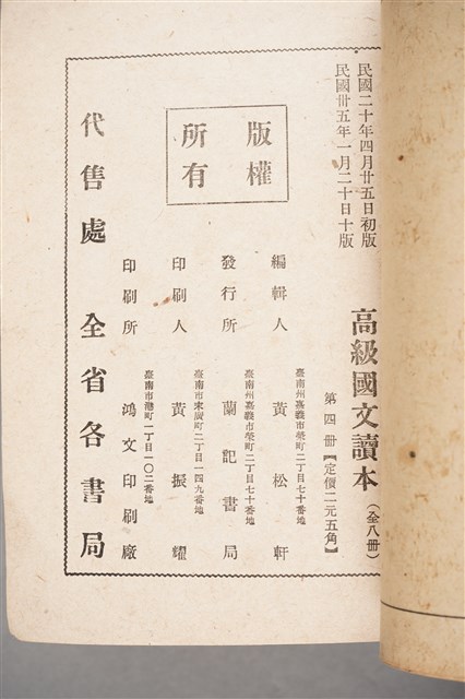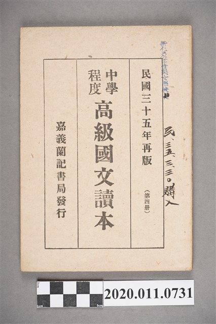 2020.011.0731 黃松軒編《民國35年再版 中等程度高級國文讀本》第四冊