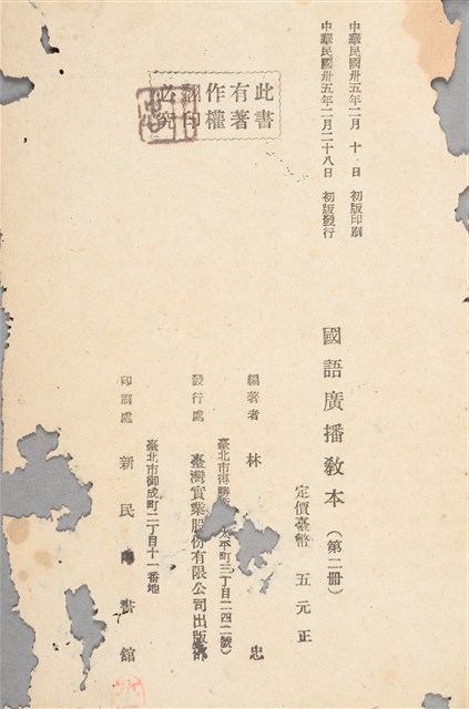 2020.011.0760 林忠編《國語廣播教本》第二冊