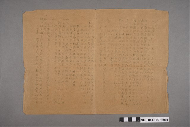 本件為建築材料筆記紙,由臺南新化柯瑞吉家族捐贈,頁面有些許摺痕,原夾藏於捐贈人柯瑞吉就讀臺灣省立臺南工業職業學校建築科課程筆記簿內,內容主要介紹瀝青的用途。