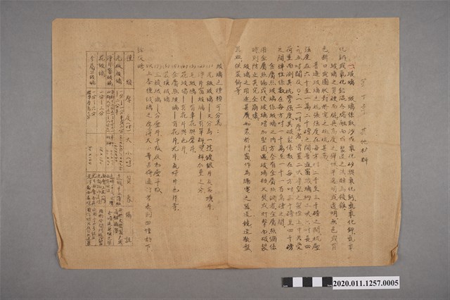 2020.011.1257.0005 建築材料筆記紙之玻璃