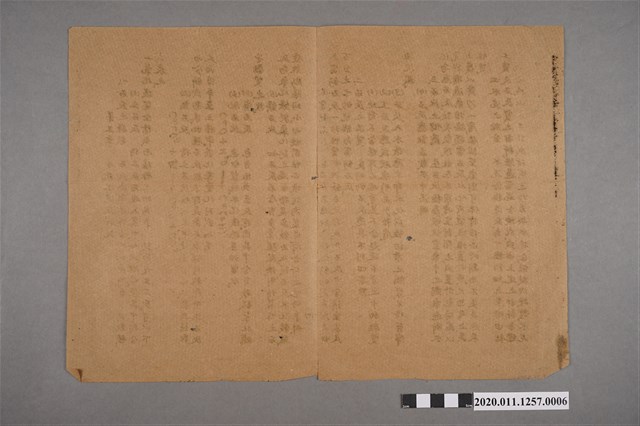 本件為建築材料筆記紙,由臺南新化柯瑞吉家族捐贈,頁面有些許摺痕,原夾藏於捐贈人柯瑞吉就讀臺灣省立臺南工業職業學校建築科課程筆記簿內,內容主要介紹石灰水泥與膠泥的成分和製作方式。