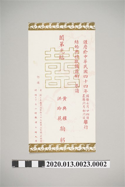 2020.013.0023 黃典權與洪玲花結婚請帖