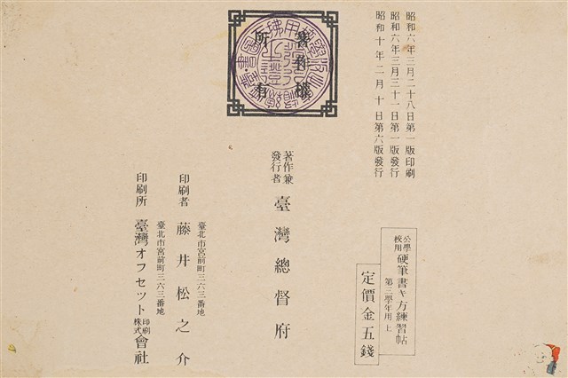 臺灣總督府《公學校用硬筆書キ方練習帖(第三學年用上)》