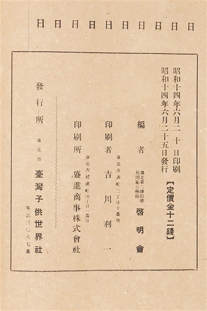 依據版權頁記載昭和14年(1939)6月25日發行時間。