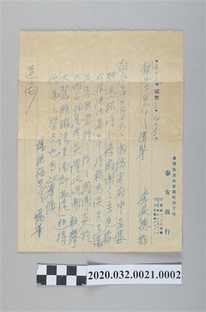 2020.032.0021.0002 高雄楊振福先生致獻堂信