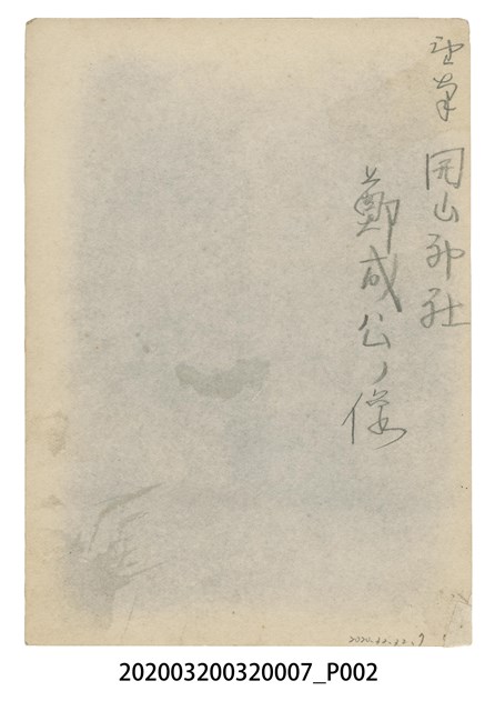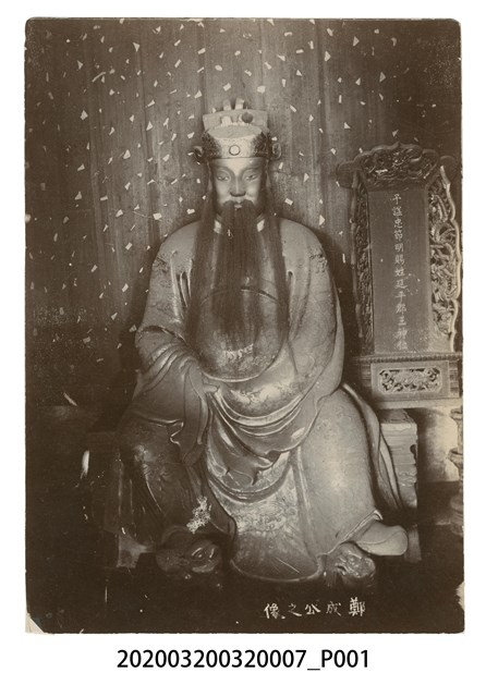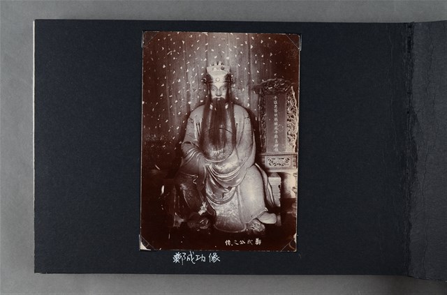 玻璃底片用蛋清作原料所洗出的相片一冊,內有安平港晚渡、安平英國領事館、鳳山城外水牛及車、臺南藝伎、臺南開山神社、鄭成功像、臺南守備騎兵隊、臺灣榕樹、臺南竹仔街等27張相片。