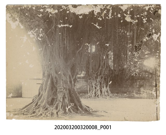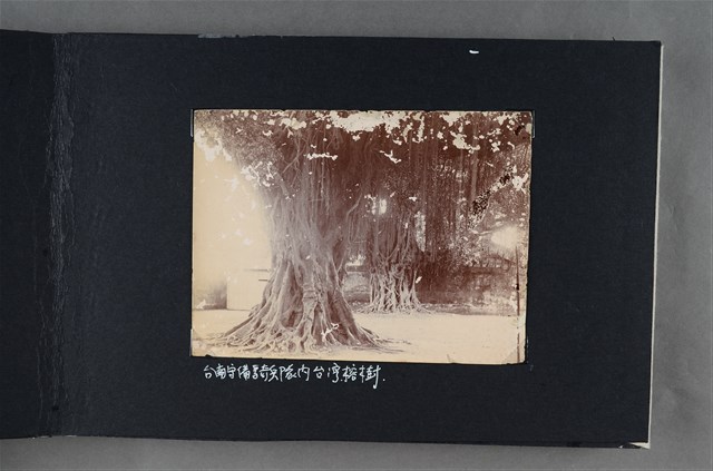 玻璃底片用蛋清作原料所洗出的相片一冊,內有安平港晚渡、安平英國領事館、鳳山城外水牛及車、臺南藝伎、臺南開山神社、鄭成功像、臺南守備騎兵隊、臺灣榕樹、臺南竹仔街等27張相片。