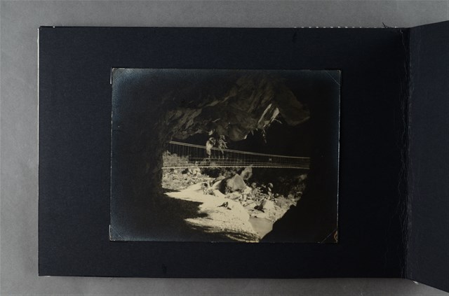 玻璃底片用蛋清作原料所洗出的相片一冊,內有安平港晚渡、安平英國領事館、鳳山城外水牛及車、臺南藝伎、臺南開山神社、鄭成功像、臺南守備騎兵隊、臺灣榕樹、臺南竹仔街等27張相片。