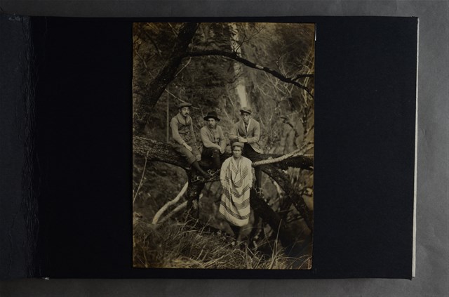 玻璃底片用蛋清作原料所洗出的相片一冊,內有安平港晚渡、安平英國領事館、鳳山城外水牛及車、臺南藝伎、臺南開山神社、鄭成功像、臺南守備騎兵隊、臺灣榕樹、臺南竹仔街等27張相片。