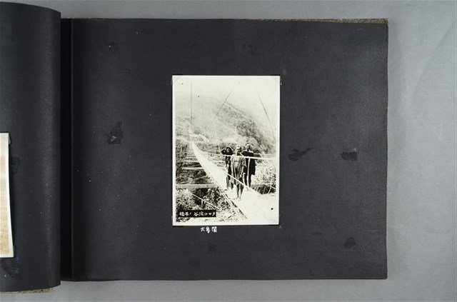 三名原住民男子於太魯閣溪谷的吊橋合影