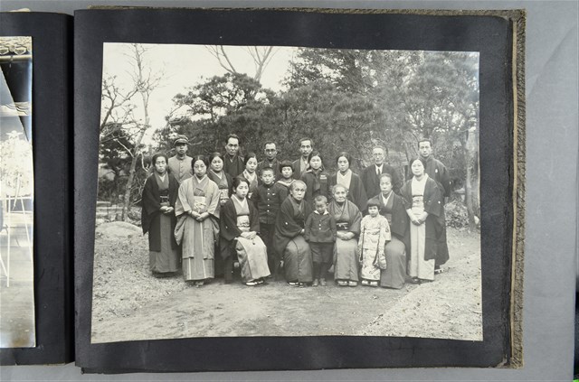 一名男子與一名女子與五名孩童於和式屋內合影