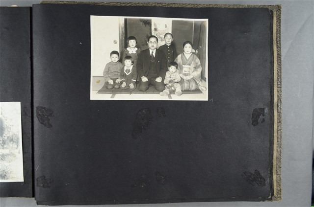 一名男子與一名女子與五名孩童於和式屋內合影