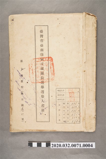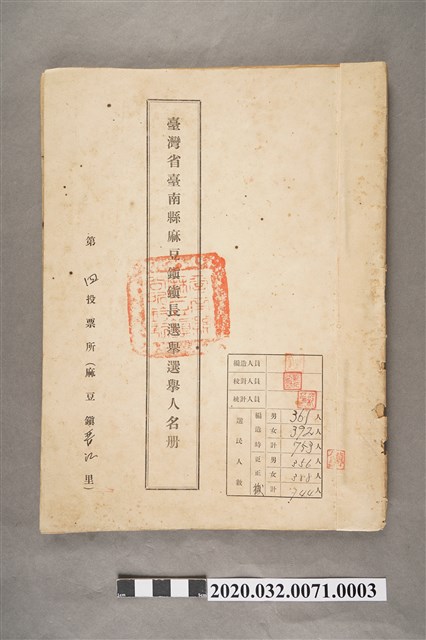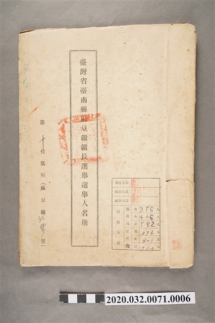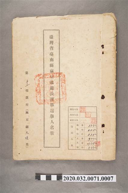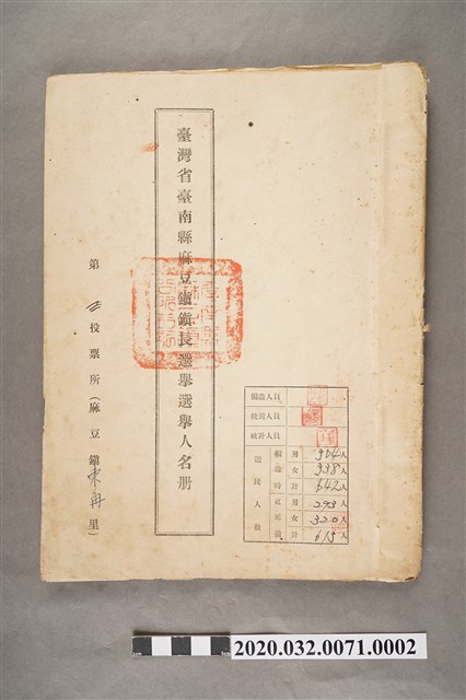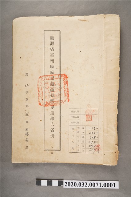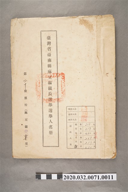 2020.032.0071 臺灣省臺南縣麻豆鎮鎮長選舉人名冊